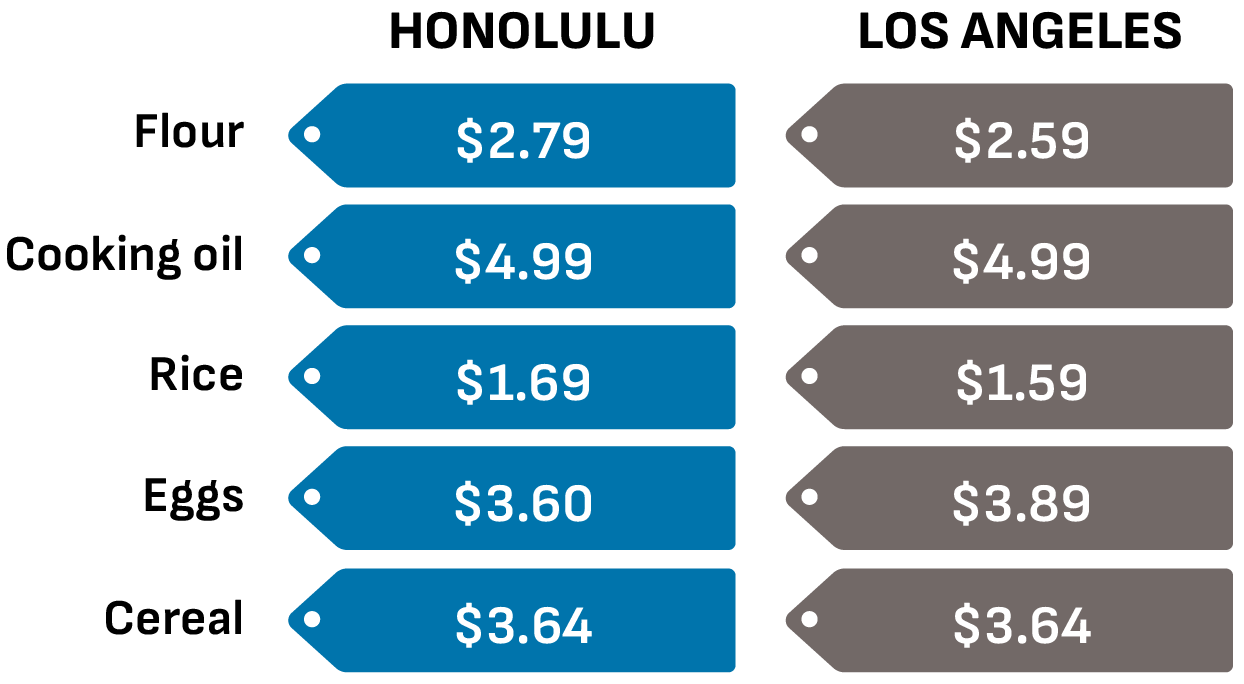 In a 2020 survey of a representative sample of the listed prices of the same 200 consumer goods as sold in Hawaiʻi and California on the same date by the same major retailer, the prices in the majority of instances (143 of 200) were precisely the same.